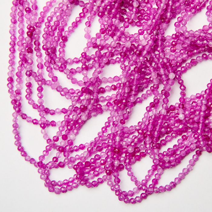 Agat fuksjowy kulka fasetowana 3mm - na sznurze