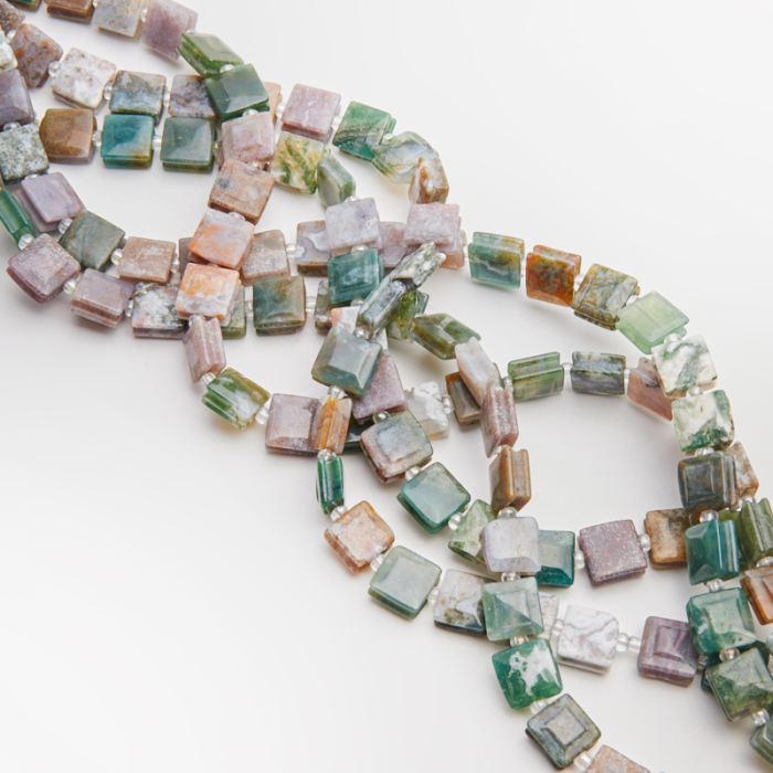 Agat indyjski kwadrat do makramy z rowkami 10mm