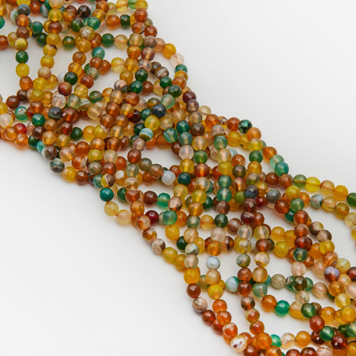 Kamienie naturalne wykonane z agatu w kształcie kulki fasetowanej. Bazowy kolor kamieni to żółty, wymieszany z turkusowym, zielonym, niebieskim, pomarańczowym, brązowym, czerwonym, szarym, czarnym, białym, mlecznym. Posiadają naturalnie powstałe wrostki oraz przebarwienia.*Ponieważ są to kamienie naturalne mogą się nieznacznie różnić od siebie rozmiarem.*Rozmiar podany w nazwie produktu jest wartością orientacyjną. Charakterystyka: