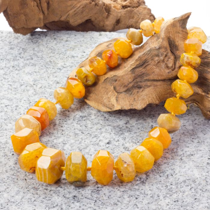 Agat oponki ciosane stopniowane bursztynowe 45cm