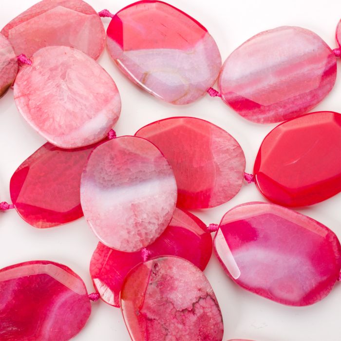 Agat plastry fasetowane spękane fuksja 55x41mm