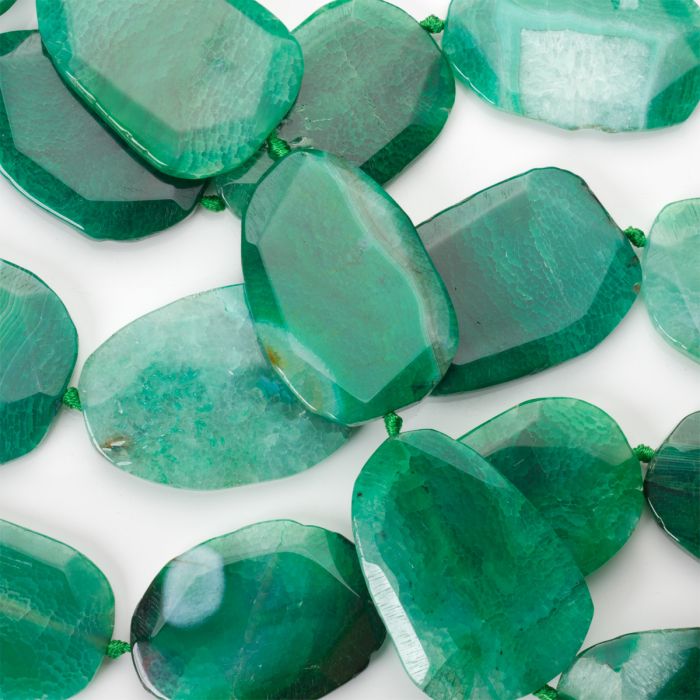 Agat plastry fasetowane spękane zielone 62x43mm