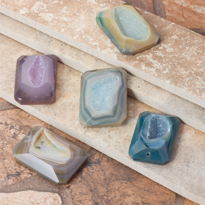 Agat prostokąt fasetowany z druzami zielony 48x34mm