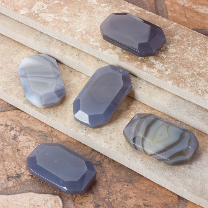 Agat szary zawieszka fasetowany prostokąt 53.5x32mm