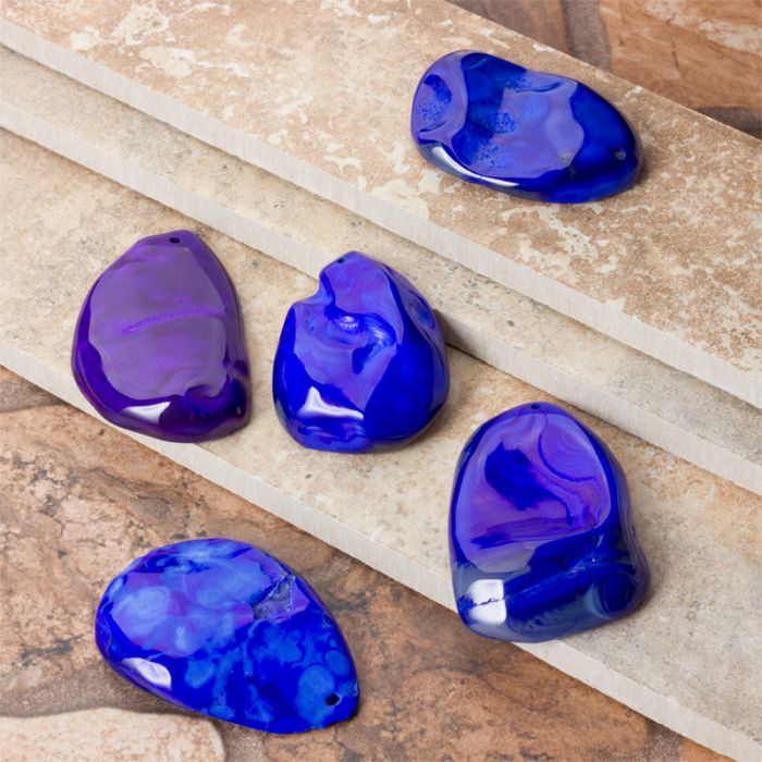 Agat trawiony zawieszka nieregularna niebieska 58x38mm
