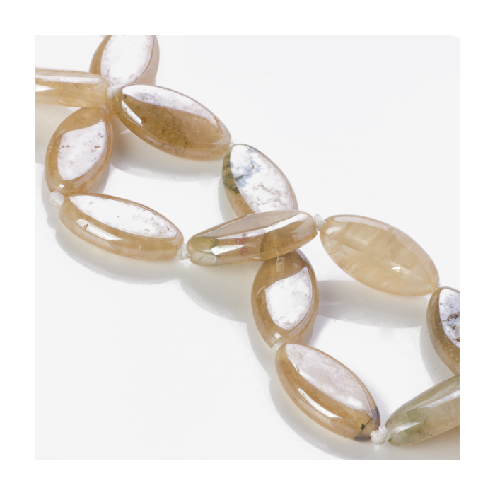Błyszczące, niczym lustro płaskie wrzeciona z agatu w kolorze jasnego cappucino. Charakterystyka: