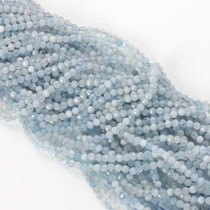 Małe, fasetowane kuleczki akwamarynu w pieknym odcieniu koloru niebieskiego. *Ponieważ są to kamienie naturalne mogą się nieznacznie różnić od siebie rozmiarem.*Rozmiar podany w nazwie produktu jest wartością orientacyjną. Charakterystyka: