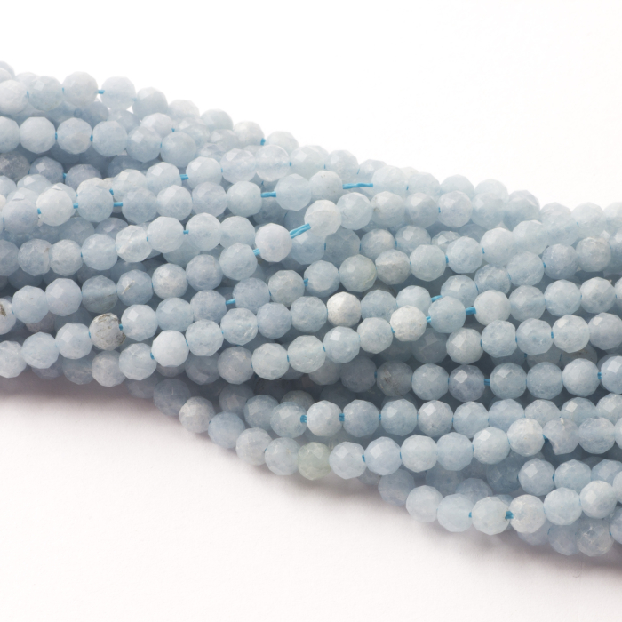 Akwamaryn kulki fasetowane 4,5mm - na sznurze