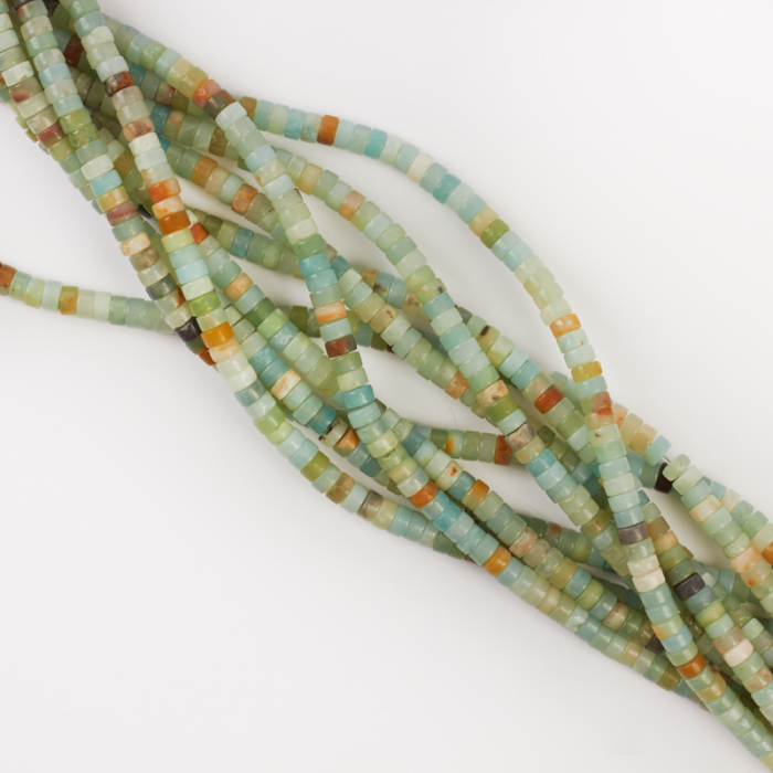 Amazonit wyróżnia się tym, że morska tonacja i delikatne mleczne przerosty nadają mu świeży, dekoracyjny wygląd. Amazonit dobrze sprawdza się w lekkich naszyjnikach, bransoletkach i kolczykach handmade.