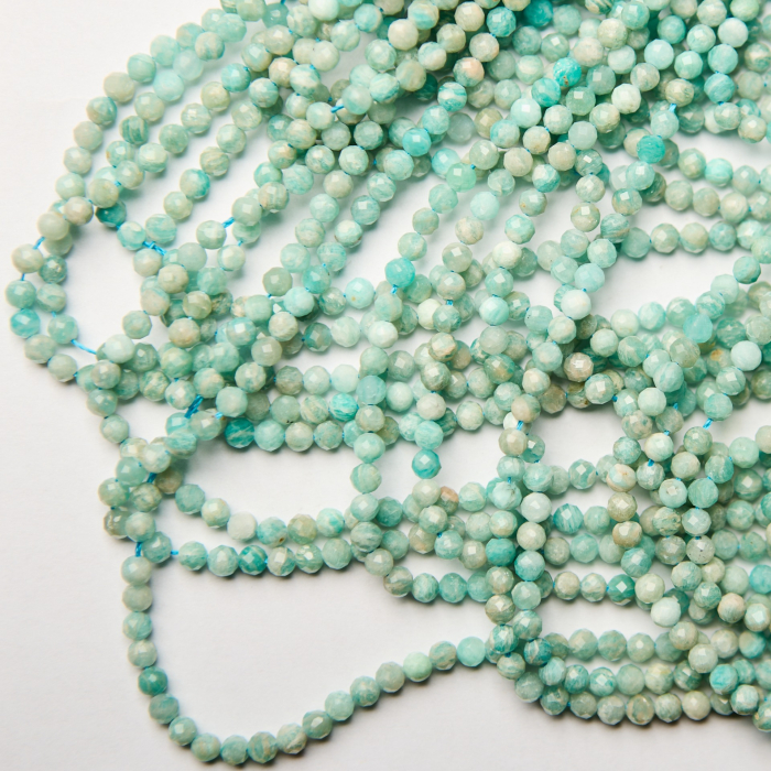 Amazonit kulki fasetowane 4mm zielony - na sznurze