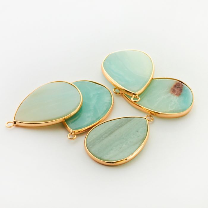 Amazonit łezka gładka w okuciu zawieszka 40mm