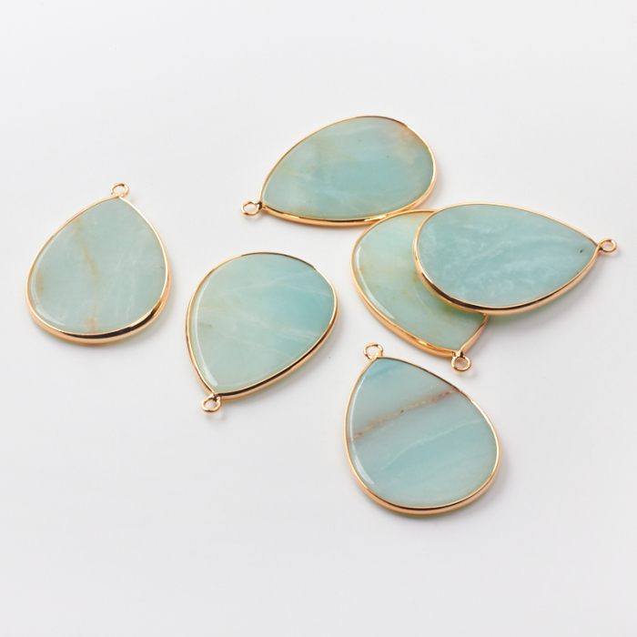 Amazonit płaska zawieszka łezka w okuciu 46mm