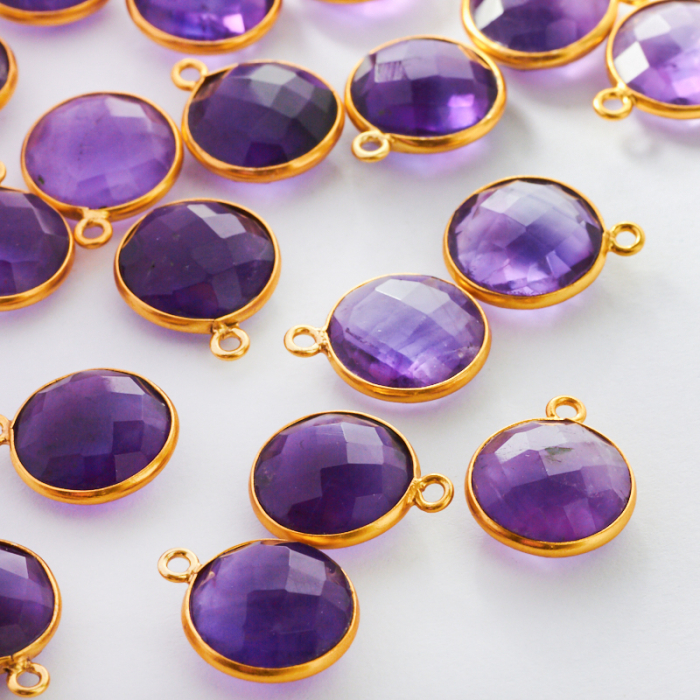 Ametyst krążek fasetowany w okuciu AG925 12mm