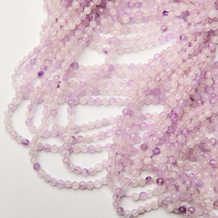 Ametyst lawendowy kulka fasetowana 4mm - na sznurze
