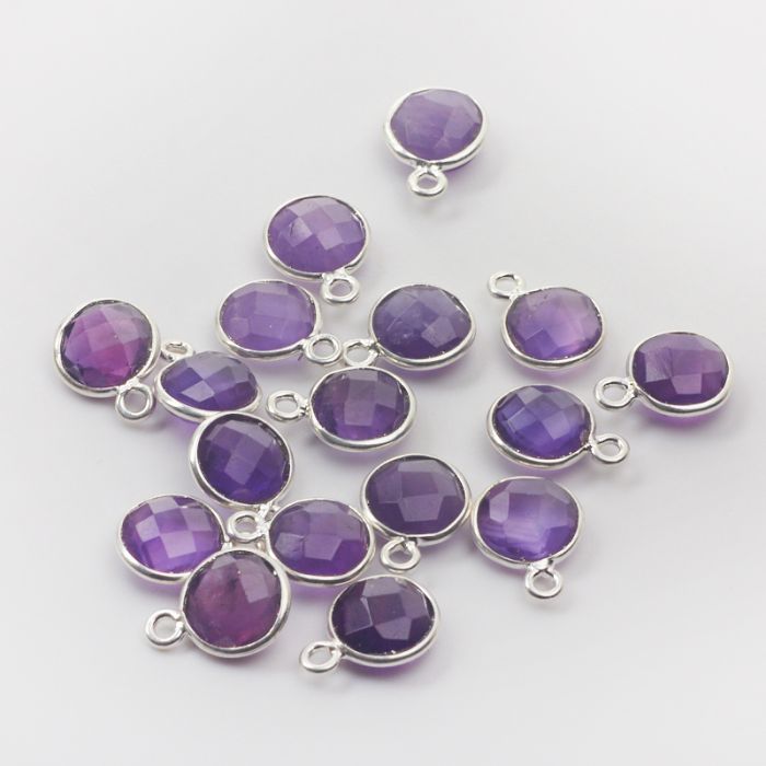 Ametyst zawieszka krążek fasetowany w srebrny okuciu AG925 7,5mm