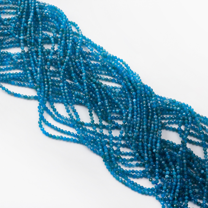 Kamienie naturalne wykonane z apatytu w kształcie kulki fasetowanej. Dominujący kolor to intensywny niebieski, morski, niektóre z kamieni są przemieszane z kolorem zielonym lub mogą być półprzezroczyste. Posiadają naturalne wrostki oraz przebarwienia.*Ponieważ są to kamienie naturalne mogą się nieznacznie różnić od siebie rozmiarem.*Rozmiar podany w nazwie produktu jest wartością orientacyjną. Charakterystyka: