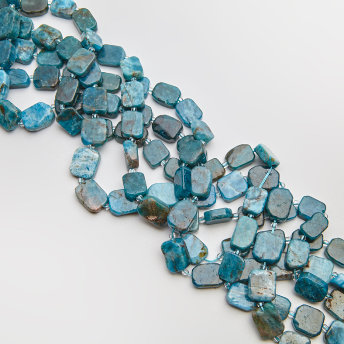 Apatyt prostokąt wyróżnia się naturalną strukturą, dzięki czemu świetnie sprawdza się w biżuterii handmade – od bransoletek po naszyjniki.