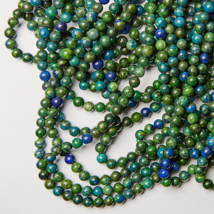 Azuryt kulka wyróżnia się naturalną strukturą, dzięki czemu świetnie sprawdza się w biżuterii handmade – od bransoletek po naszyjniki.
