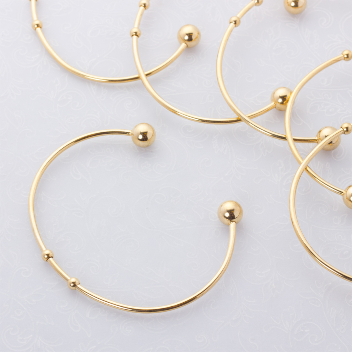 Baza bransoletki z kuleczkami ze stali chirurgicznej w kolorze złotym 16-20cmTo trwały element biżuterii lub półfabrykat jubilerski, który dobrze sprawdza się w codziennych realizacjach. Stal chirurgiczna 316L dobrze sprawdza się w biżuterii noszonej na co dzień, ponieważ łączy trwałość z estetycznym wykończeniem.Bransoletka ze stali chirurgicznej 316L może pełnić funkcję gotowej ozdoby albo bazy do stworzenia własnej kompozycji handmade. Dzięki trwałemu materiałowi i estetycznemu wykończeniu dobrze sprawdza się w codziennym użytkowaniu.Rozmiar