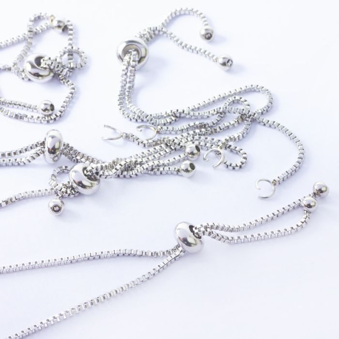 Baza bransoletki z łańcuszka z silikonowym stoperem ze stali chirurgicznej w kolorze srebrnym dł. regulowana