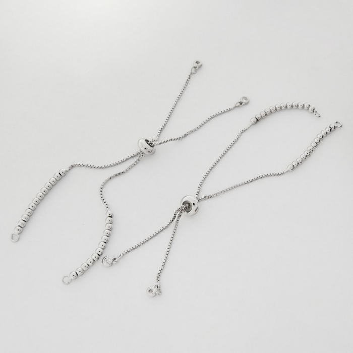 Baza bransoletki ze stoperem silikonowym i kuleczkami z mosiądzu w kolorze srebrnym 12cm