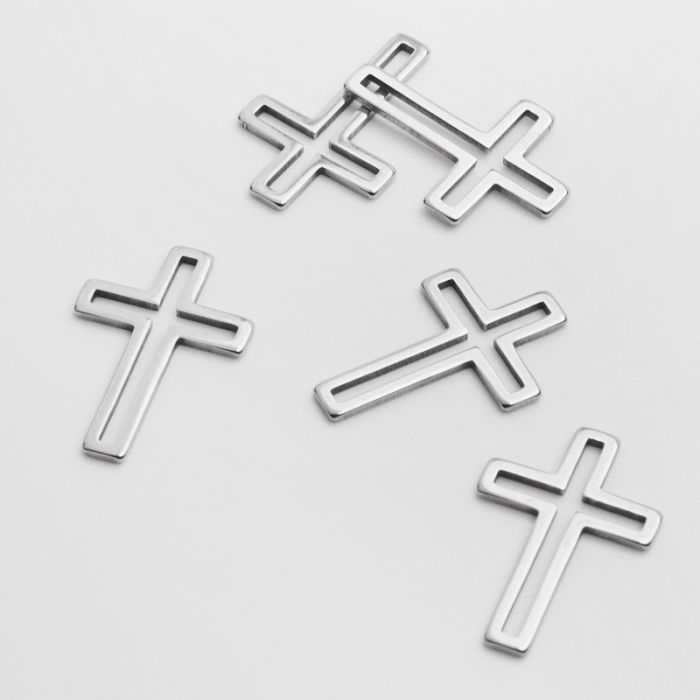 Baza geometryczna ze stali chirurgicznej krzyż w kolorze srebrnym 21x14mm