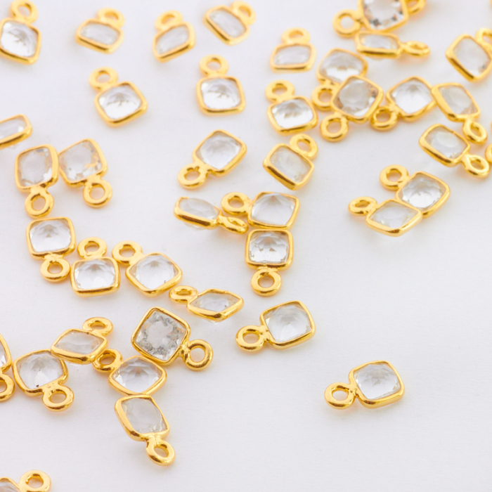 Biały kryształ fasetowany kwadratowy zawieszka w okuciu AG925 4mm