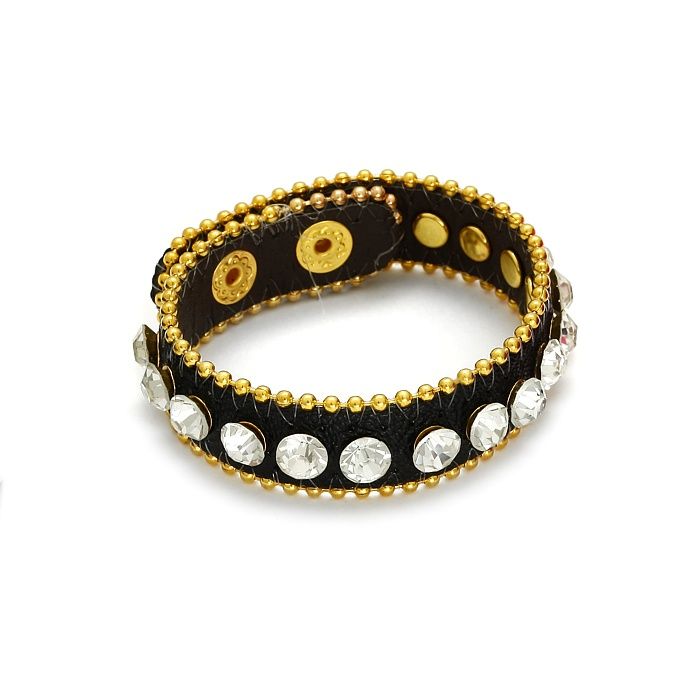 Bransoletka czarny pasek wysadzany kryształkami 18-21cm