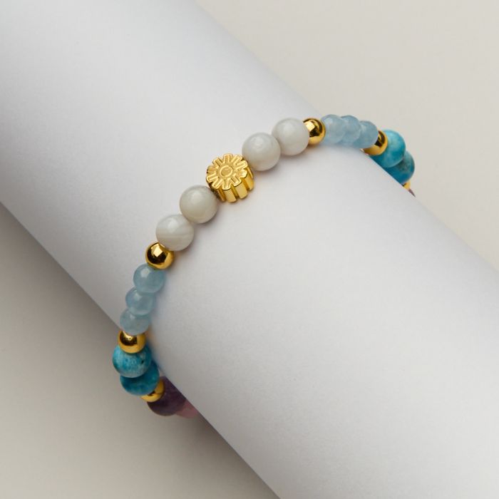 Bransoletka na lince z naturalnymi kamieniami i stokrotką z hematytu