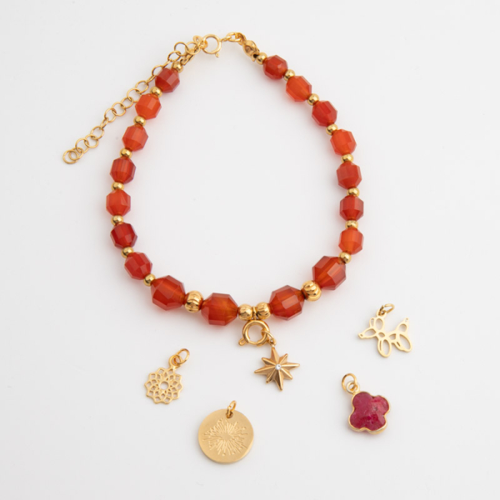 Bransoletka na lince zkarneolem i wymiennymi zawieszkami
