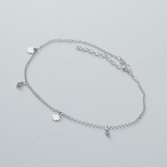 Bransoletka na nogę z koniczynkami rodowana AG925 24 - 29 cm