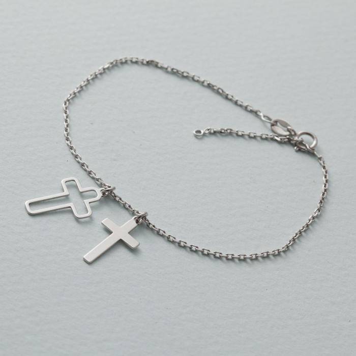 Bransoletka rodowana z dwoma krzyżami AG925 17 - 20 cm