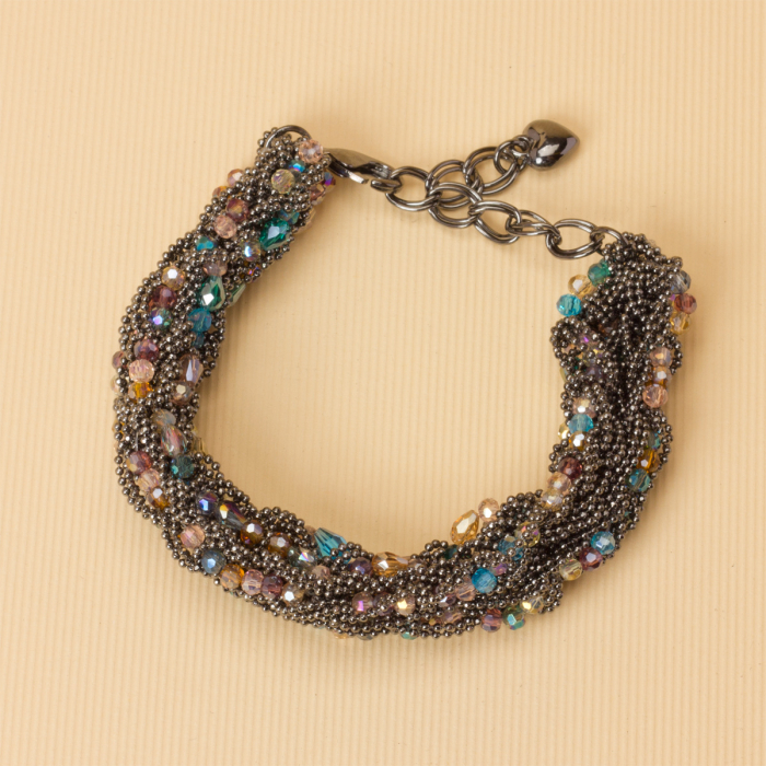 Bransoletka z drobnych łańcuszków z kryształkami 20-25cm