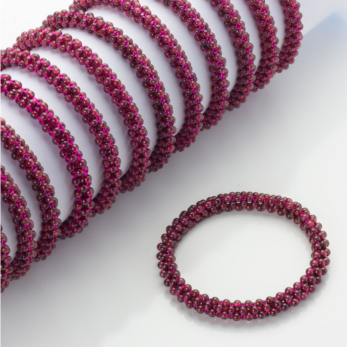 Bransoletka z granatu pleciona fioletowa 16-20cm