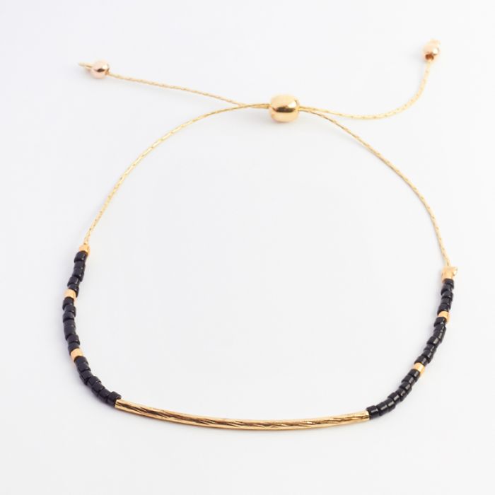 Bransoletka z rurką diamentowaną i czarnymi koralikami Miyuki