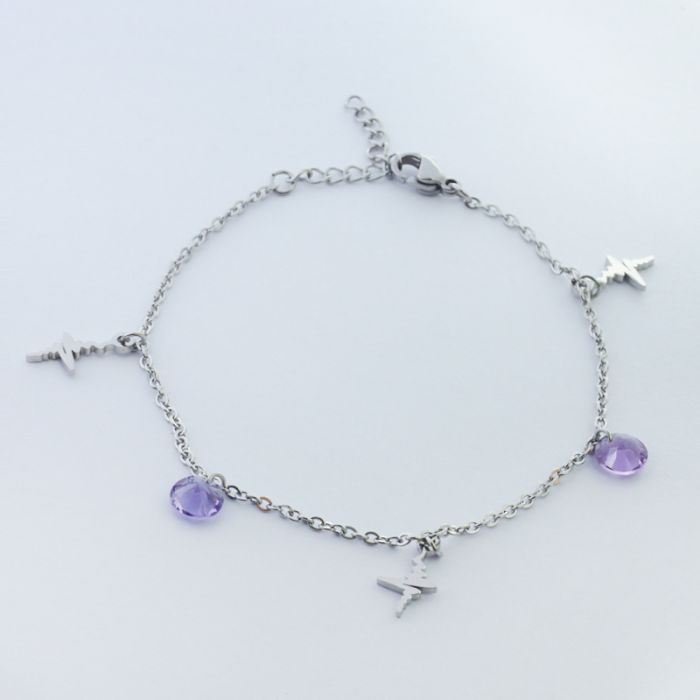 Bransoletka ze stali chirurgicznej linia życia z fioletową cyrkonią w kolorze srebrnym 19,5cm