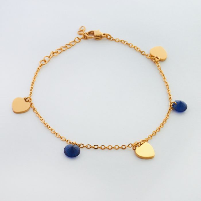 Bransoletka ze stali chirurgicznej serce z granatową cyrkonią w kolorze złotym 19cm