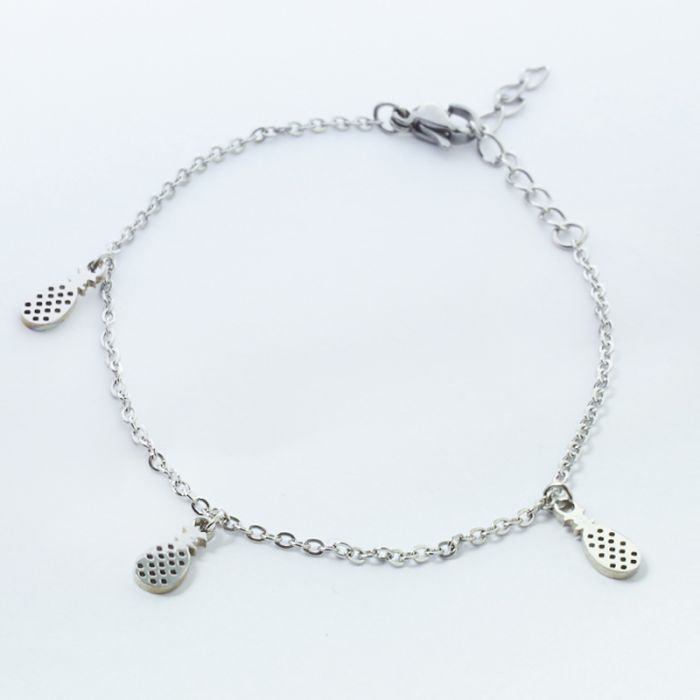 Bransoletka ze stali chirurgicznej trzy zawieszki ananas w kolorze srebrnym 19,5cm