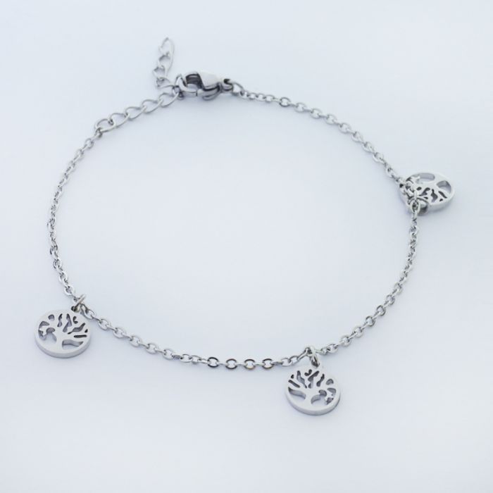 Bransoletka ze stali chirurgicznej z trzema zawieszkami drzewo rodziny w kolorze srebrnym 19cm