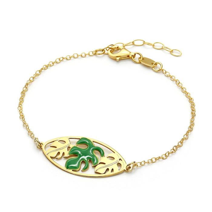 Bransoletka złocona z liśćmi monstery emaliowana AG925