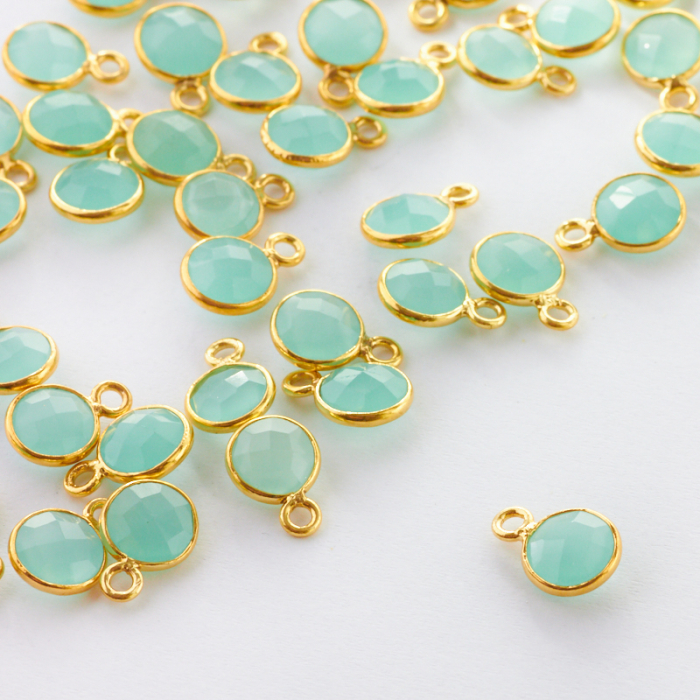 Chalcedon krążek zielony fasetowany w okuciu zawieszka AG925 6mm
