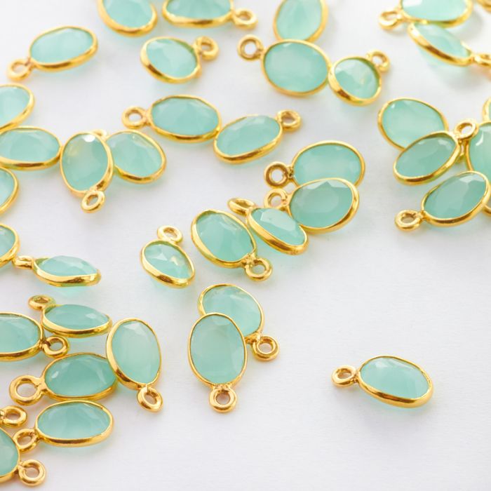 Chalcedon owal zielony fasetowany w okuciu zawieszka AG925 6,5mm