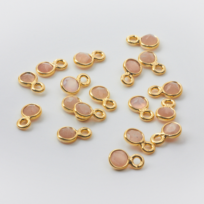 Chalcedon różowy fasetowany w okuciu zawieszka pozłacana 4mm