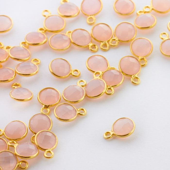 Chalcedon różowy krążek fasetowany w okuciu zawieszka AG925 pozłacana 6mm