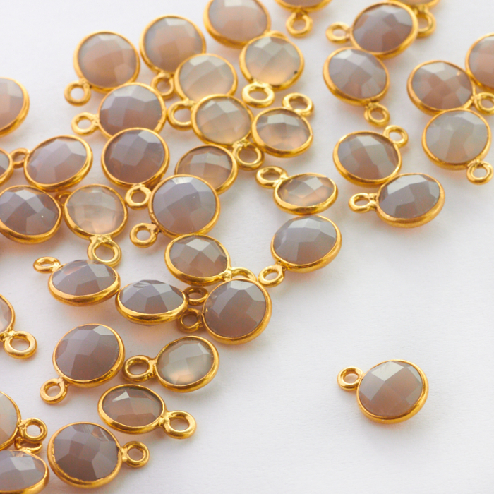 Chalcedon szary krążek fasetowany w okuciu zawieszka AG925 6mm