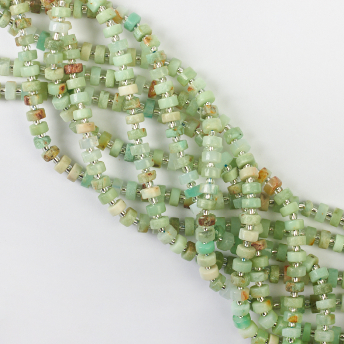Kamienie naturalne wykonane z chryzoprazu w kształcie krążka. Dominujący kolor to odcienie zieleni, miejscami przezroczysty lub pomieszany z beżem. Kamienie posiadają naturalne przebarwienia i wrostki w kolorze brązowym.Krążki posiadają naturalnie powstałe wyżłobienia.*Ponieważ są to kamienie naturalne mogą się nieznacznie różnić od siebie rozmiarem.*Rozmiar podany w nazwie produktu jest wartością orientacyjną. Charakterystyka: