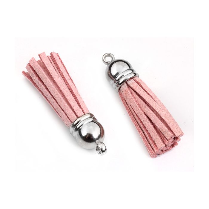 Chwost z rzemienia zamszowego w srebrnym okuciu brudny róż 4cm