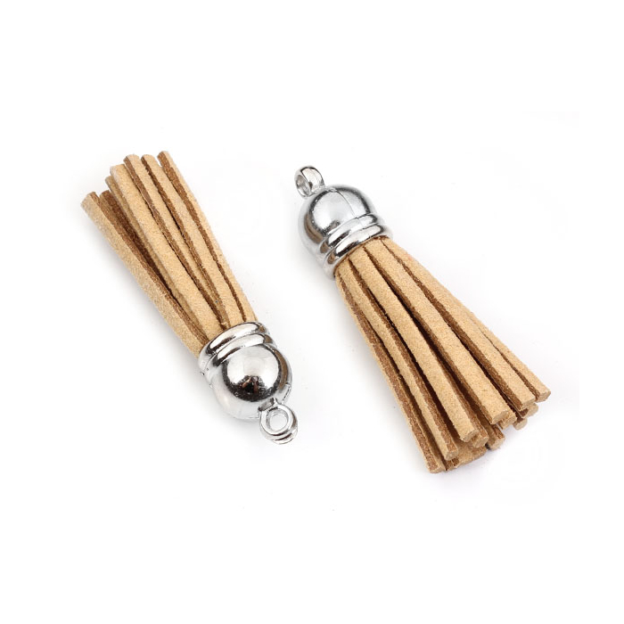 Chwost z rzemienia zamszowego w srebrnym okuciu kremowy 4cm