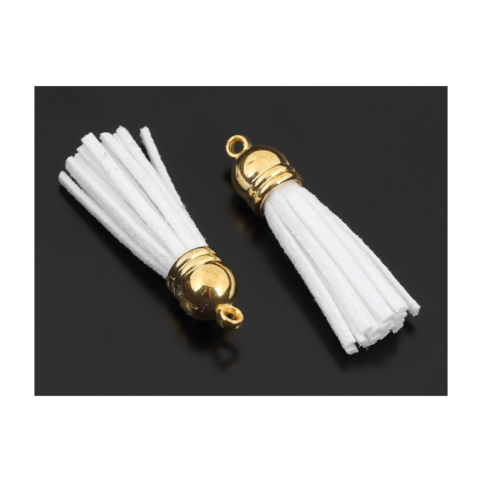 Chwost z rzemienia zamszowego w złotym okuciu biały 4cm