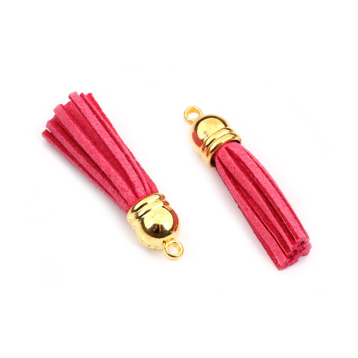 Chwost z rzemienia zamszowego w złotym okuciu fuksja 4cm